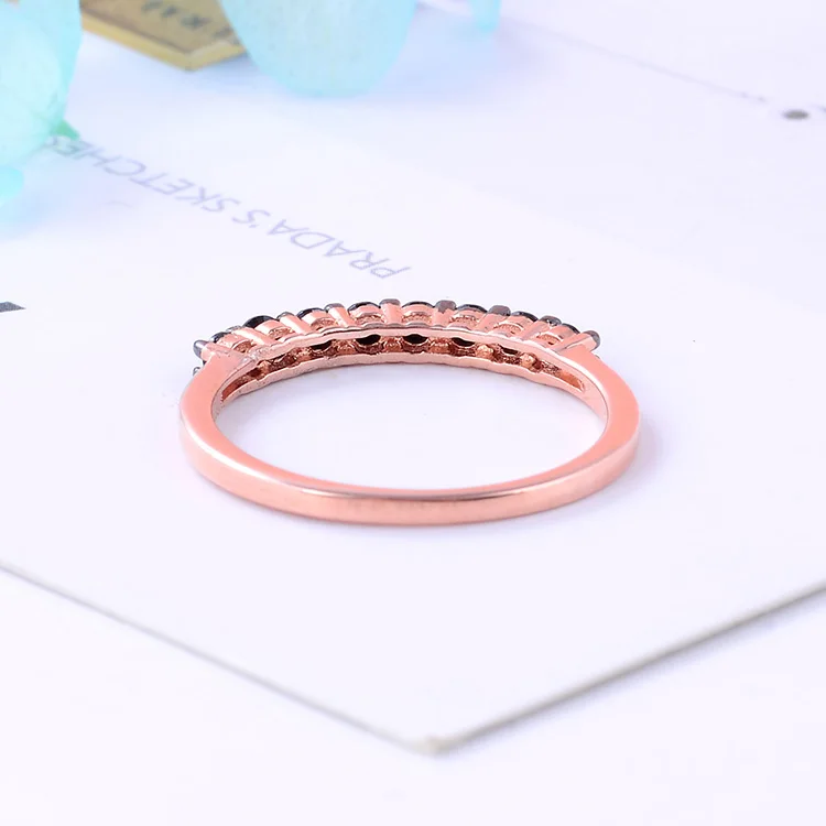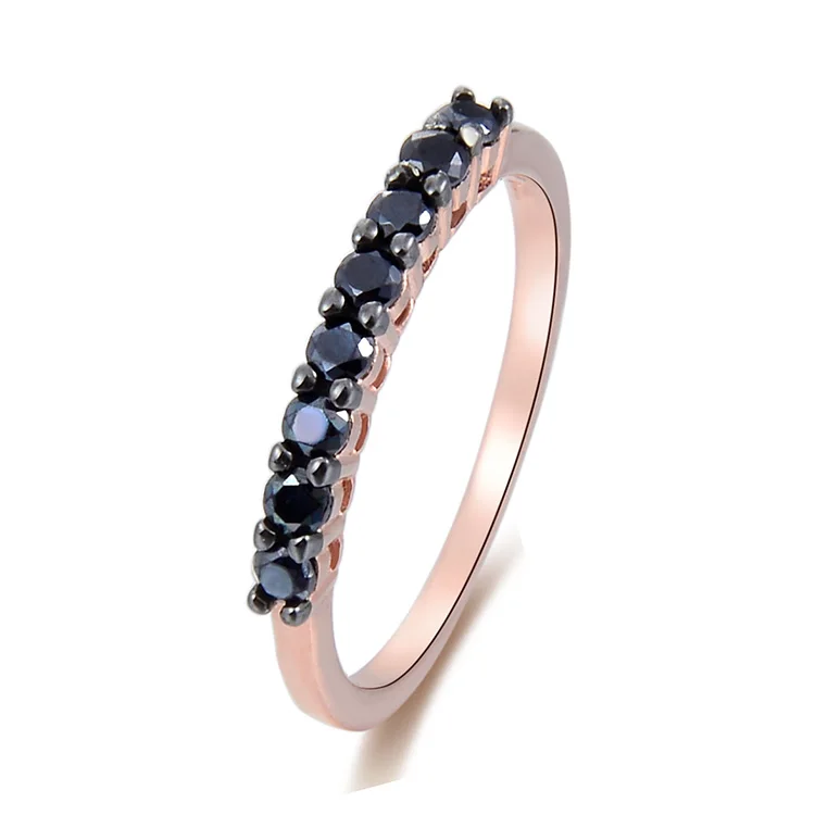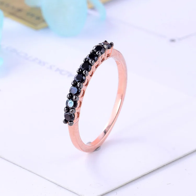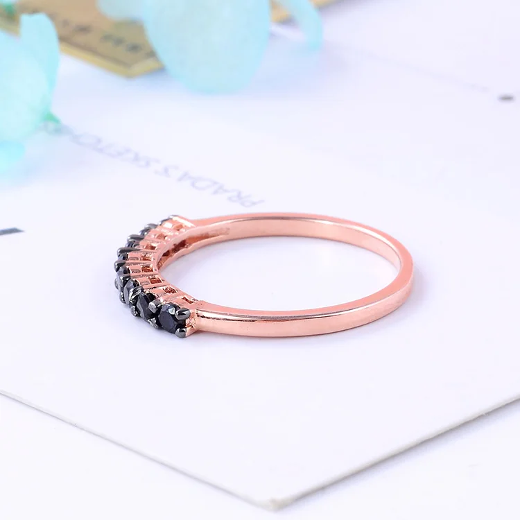 Rose Gold Plated 925 Sterling Silver Black CZ Vintage Half Eternity Ring Delicate Micro Pave Band Stackable Thin Comfort Wedding